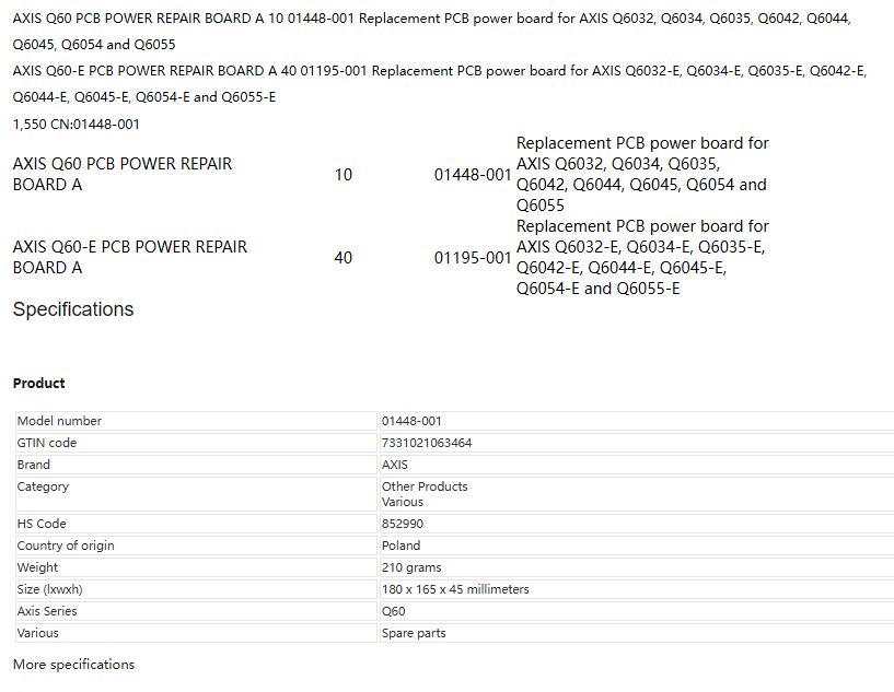 More specifications康拓威技术-销售安讯士AXIS Q60 PCB POWER REPAIR BOARD A 01448-001 Q6045室内球机电源主板