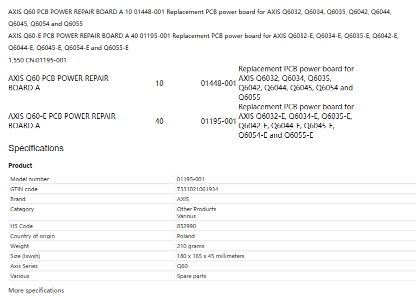 安讯士AXIS Q60-E PCB POWER REPAIR BOARD A 01195-001 Q6045-E室外球机电源主板