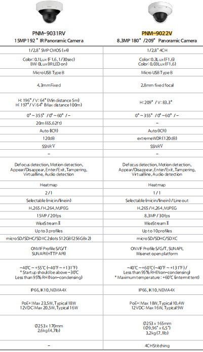 4K,20fps,ICR,H.265/H.264/MJPEG,120dB,2.8mm *4定焦,线性&Mic入/线性出,209°全景,10码流,AI